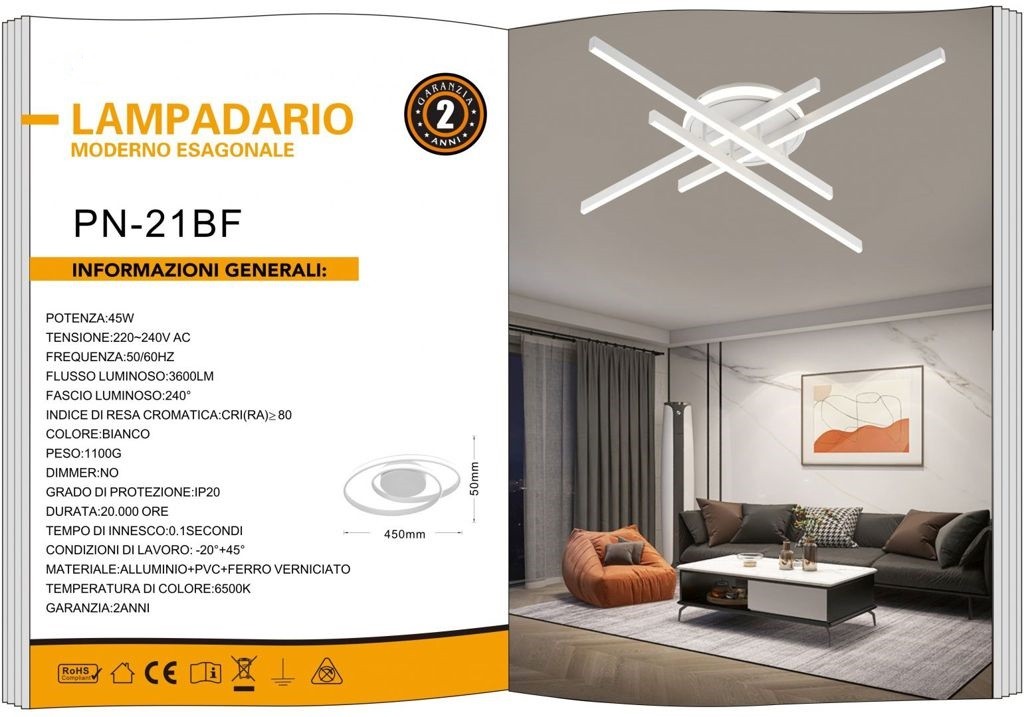 PLAFONIERA DA SOFFITTO A LED 45W LUCE 6500K LUMEN 3600