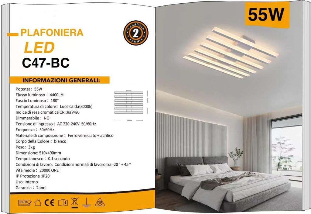 PLAFONIERA DA SOFFITTO A LED 55W LUCE 3000K LUMEN 4400