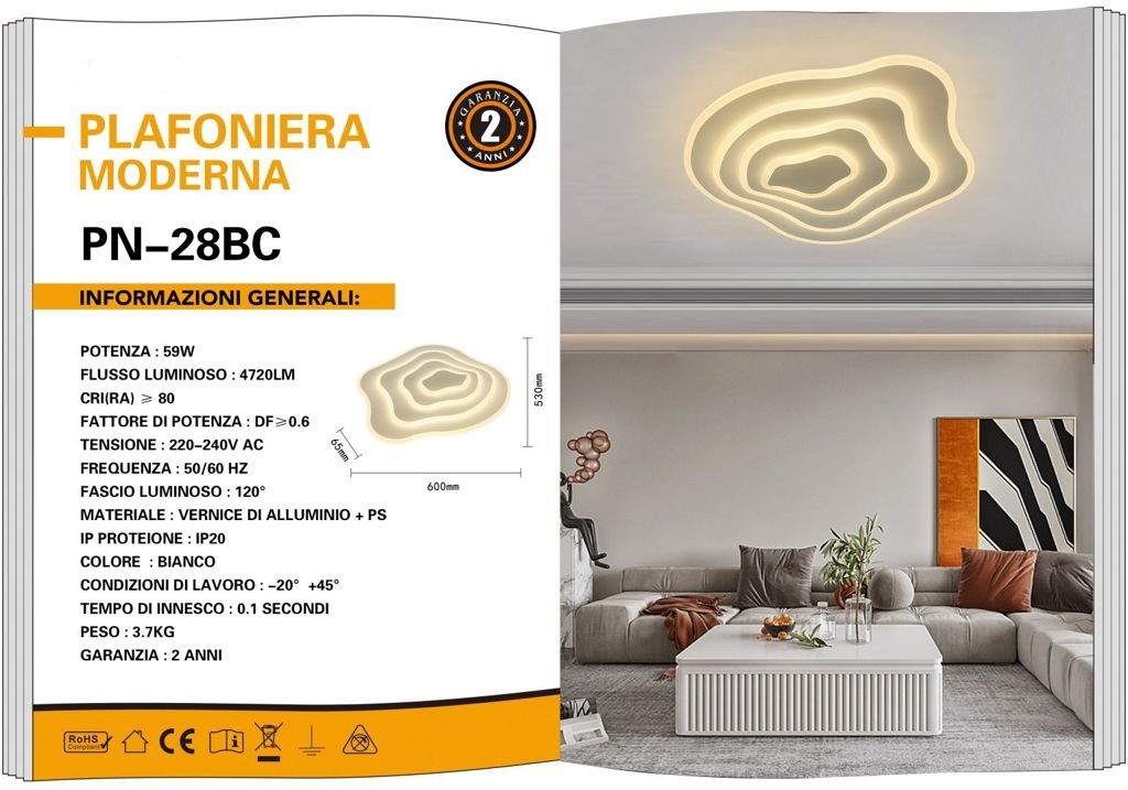 PLAFONIERA DA SOFFITTO A LED 59W LUCE 3000K LUMEN 4720