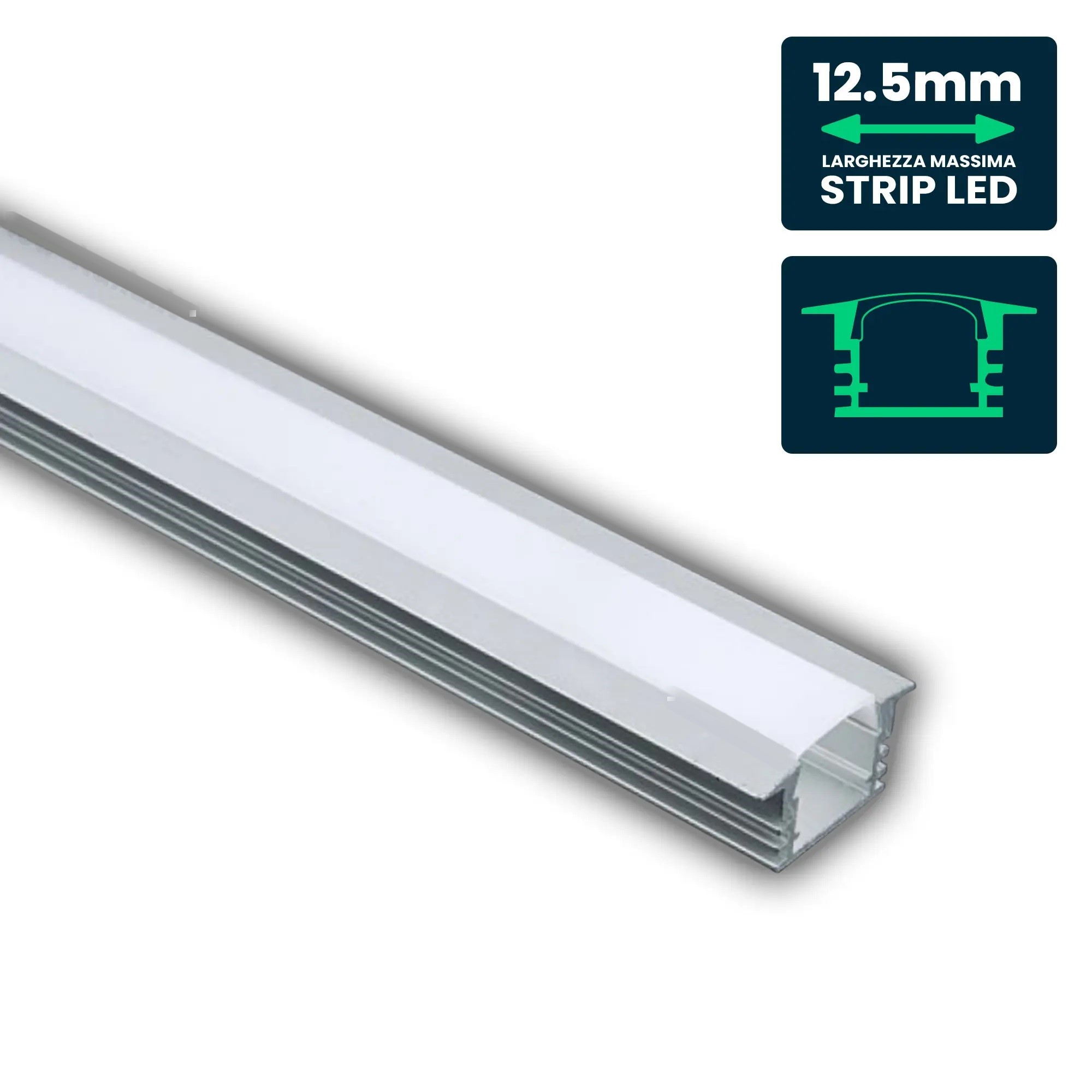 Profilo 2000×24.5×12.2mm Lineare da Incasso per Strip LED fino a 12.5mm, Alluminio Silver con Copertura Opaca