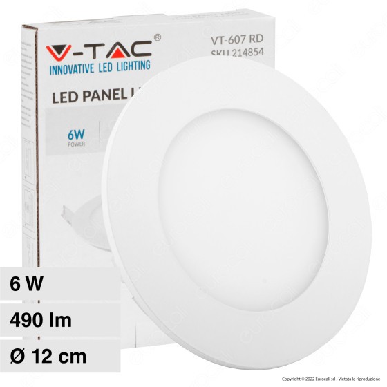 SKU 214856 V-TAC Mini Pannello LED 6W Montaggio ad Incasso Rotondo 6400K