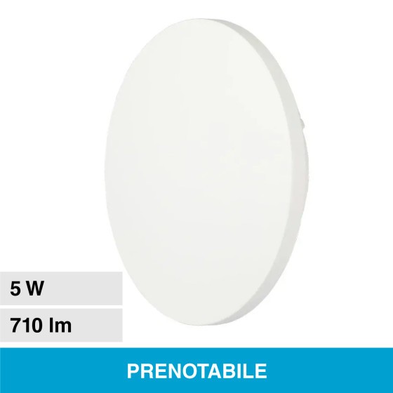 Lampada LED da muro 5W e tecnologia LED SMD. Forma rotonda realizzata in alluminio di colore bianco e copertura opaca. Fascio luminoso di 360° e flusso luminoso di 710 lm. Alta luminosità con rapporto di 142 lm/W. IP65 Luce Bianca Calda 3000K.