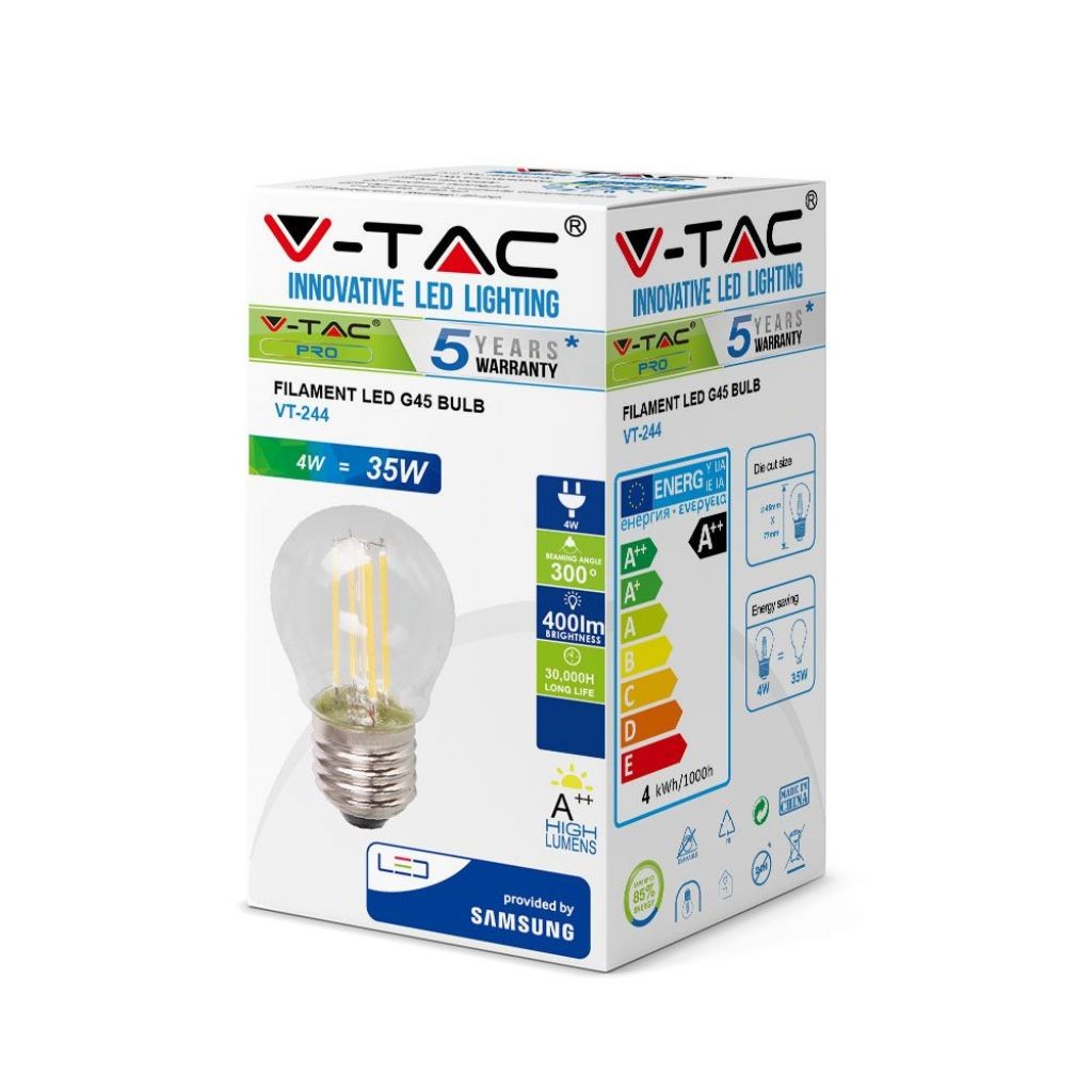SKU 280 VT-244V-TAC PRO Lampadina LED Chip Samsung E27 4W G45 Filamento 2700K