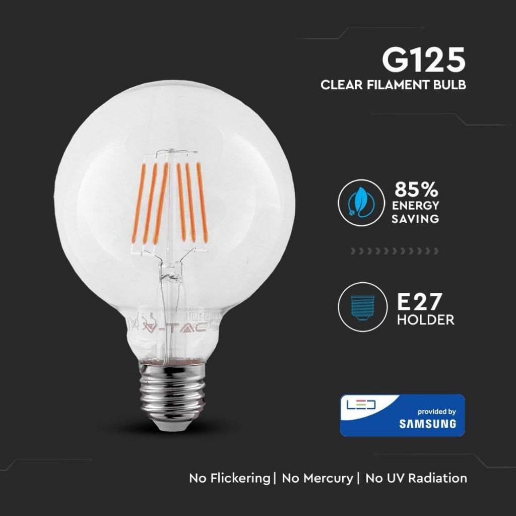 SKU 292 VT-287 V-TAC PRO Lampadina LED Chip Samsung E27 6W 130LM/W G125 Filamento 2700K