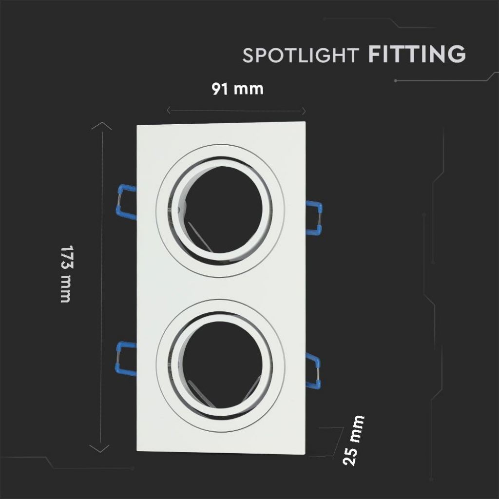 SKU 3607 VT-783SQ-WH V-TAC Portafaretto LED da Incasso Rettangolare 2*GU10 e GU5.3 (MR16) Corpo in Alluminio Bianco Orientabile