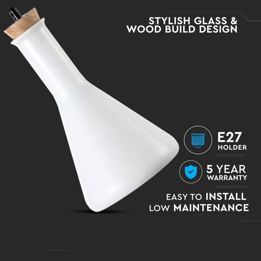 SKU 3758 VT-7175V-TAC Lampadario LED in Vetro e Legno con Portalampada E27 (Max 60W) Colore Bianco Lucido