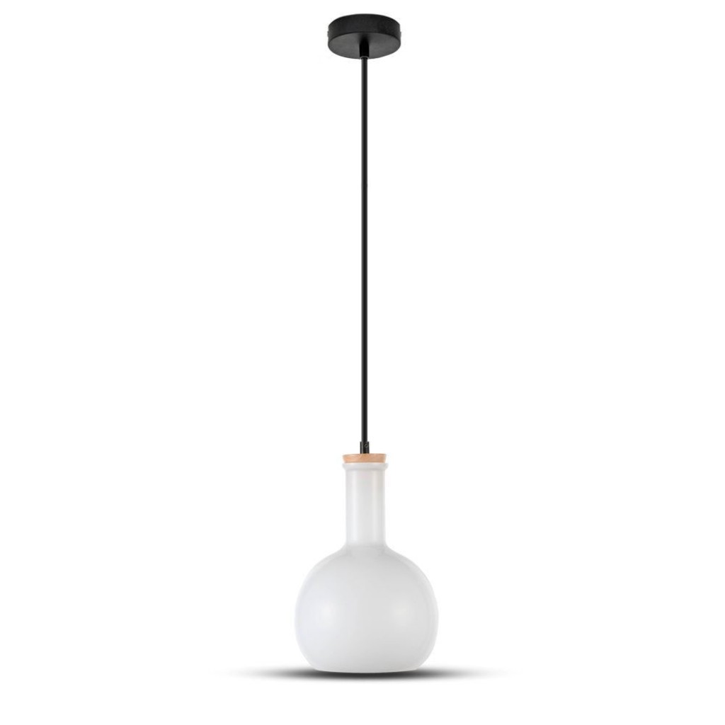 SKU 3759 VT-7205 V-TAC Lampadario LED in Vetro e Legno con Portalampada E27 (Max 60W) Colore Bianco Lucido