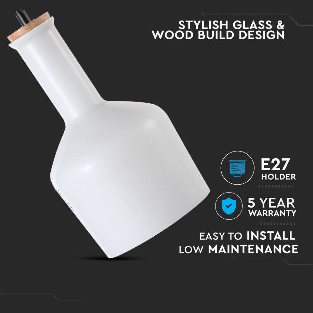 SKU 3760 VT-7177 V-TAC Lampadario LED in Vetro e Legno con Portalampada E27 (Max 60W) Colore Bianco Lucido