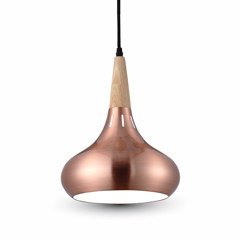 SKU 3817 VT-7340 V-TAC Lampadario LED a Goccia in Metallo e Legno con Portalampada E27 (Max 60W) Colore Bronzo Rosso d: 360mm