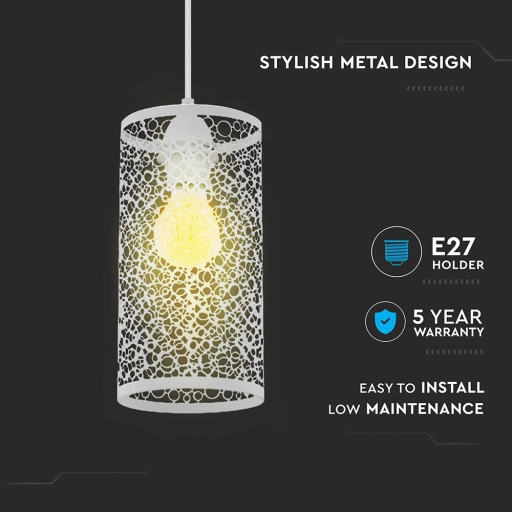 SKU 3826 VT-7131-MW V-TAC Lampadario LED a Cilindro Alveolare in Metallo Satinato con Portalampada E27 Colore Bianco Opaco