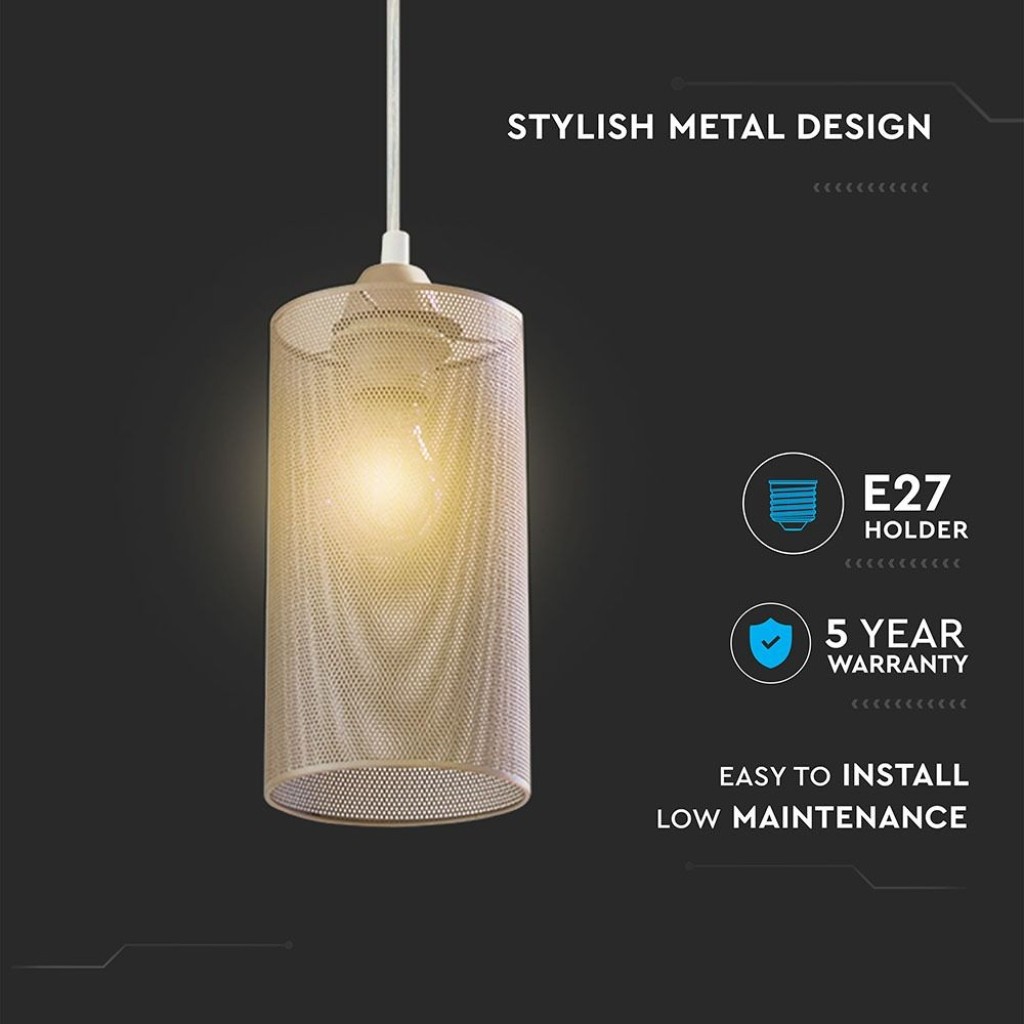 SKU 3827 VT-7132-CG V-TAC Lampadario LED a Cilindro in Metallo con Portalampada E27 (Colore Oro Champagne