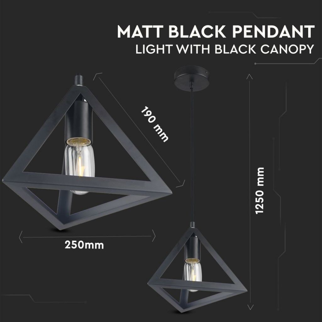 SKU 3832 VT-7141-MB V-TAC Lampadario LED a Piramide in Metallo con Portalampada E27 (Max 60W) Colore Nero Opaco