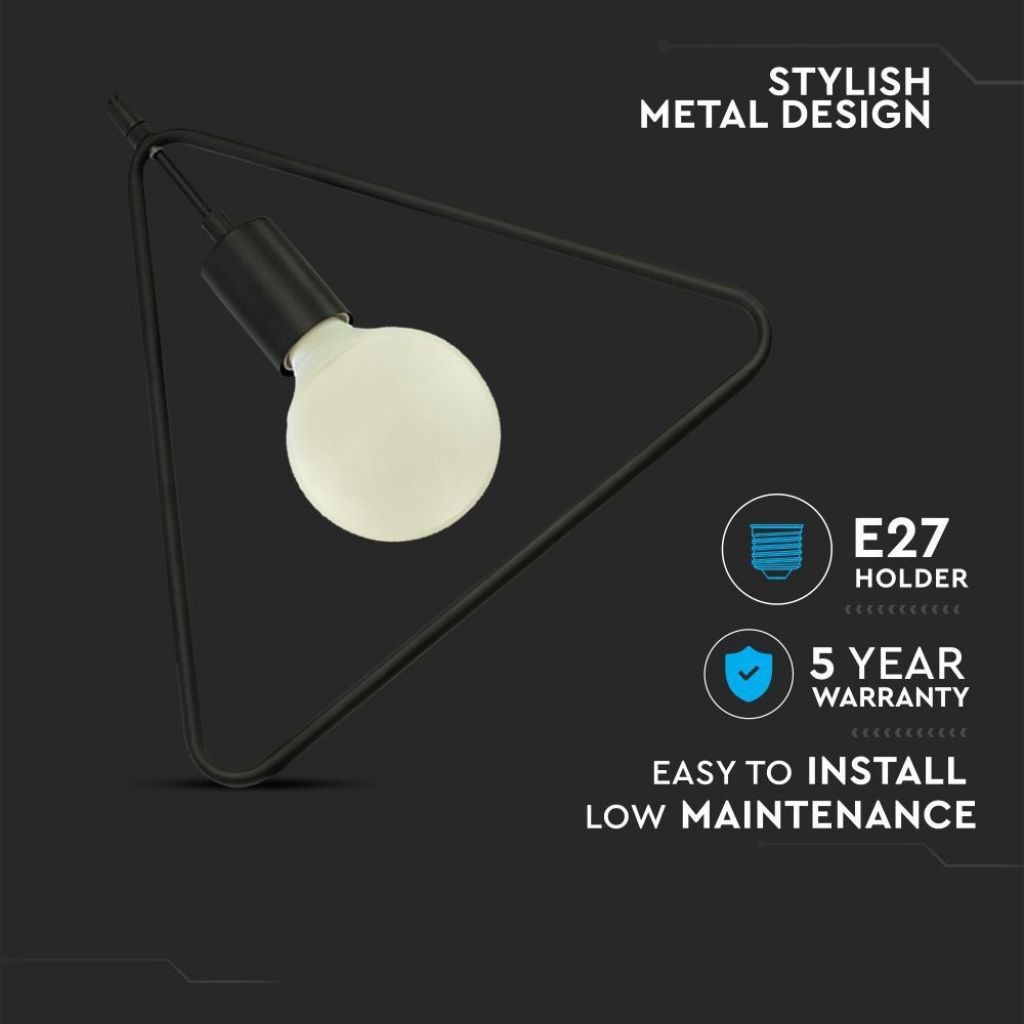 SKU 3838 VT-7321-MB V-TAC Lampadario LED Triangolare in Metallo con Portalampada E27 (Max 60W) Colore Nero Opaco