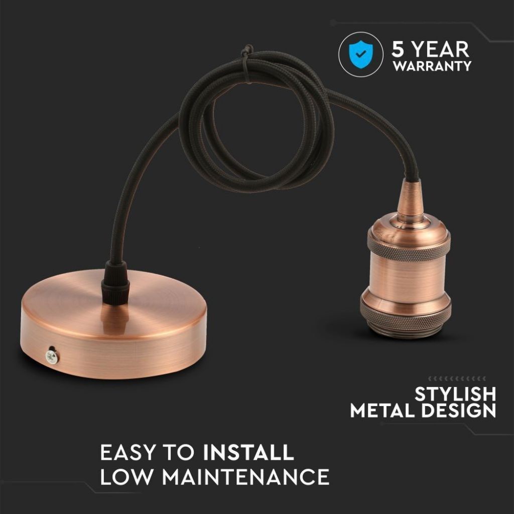 SKU 3840 VT-7555-RB condividi V-TAC Portalampada a Sospensione E27 (Max 60W) Colore in Metallo Colore Bronzo Rosso Potenza