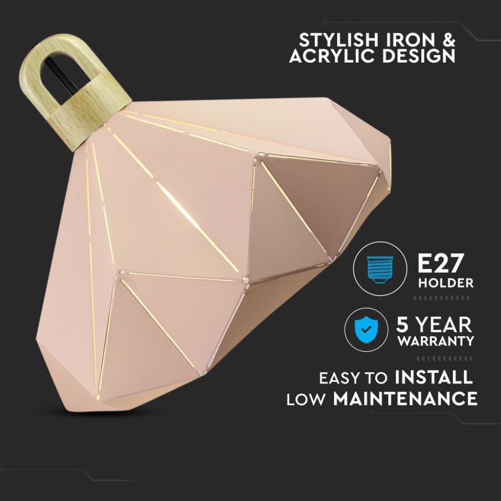 SKU 3951 VT-7323 V-TAC Lampadario LED a Prisma in Metallo con Portalampada E27 (Max 60W) Colore Rosa e Attacco in Legno