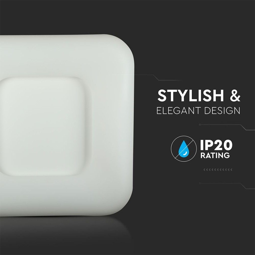 Plafoniera LED V-Tac mod. VT-7753 con telecomando e potenza di 80W. Forma quadrata in plastica di colore bianco e copertura opaca in tecnopolimero di colore bianco. Fascio luminoso di 120°, flusso luminoso fino a 6000 lm e rapporto di 82 lm/W.