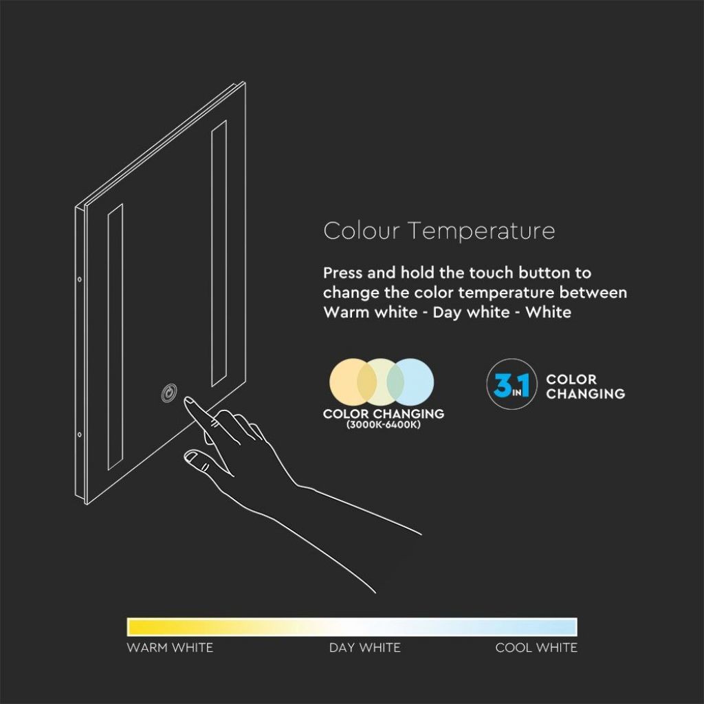 SKU 40461 25W Specchio LED VT-8701 V-TAC Rettangolare con Sistema Anti-appannamento Interrutore Touch 3 in 1 700*500*35mm IP44