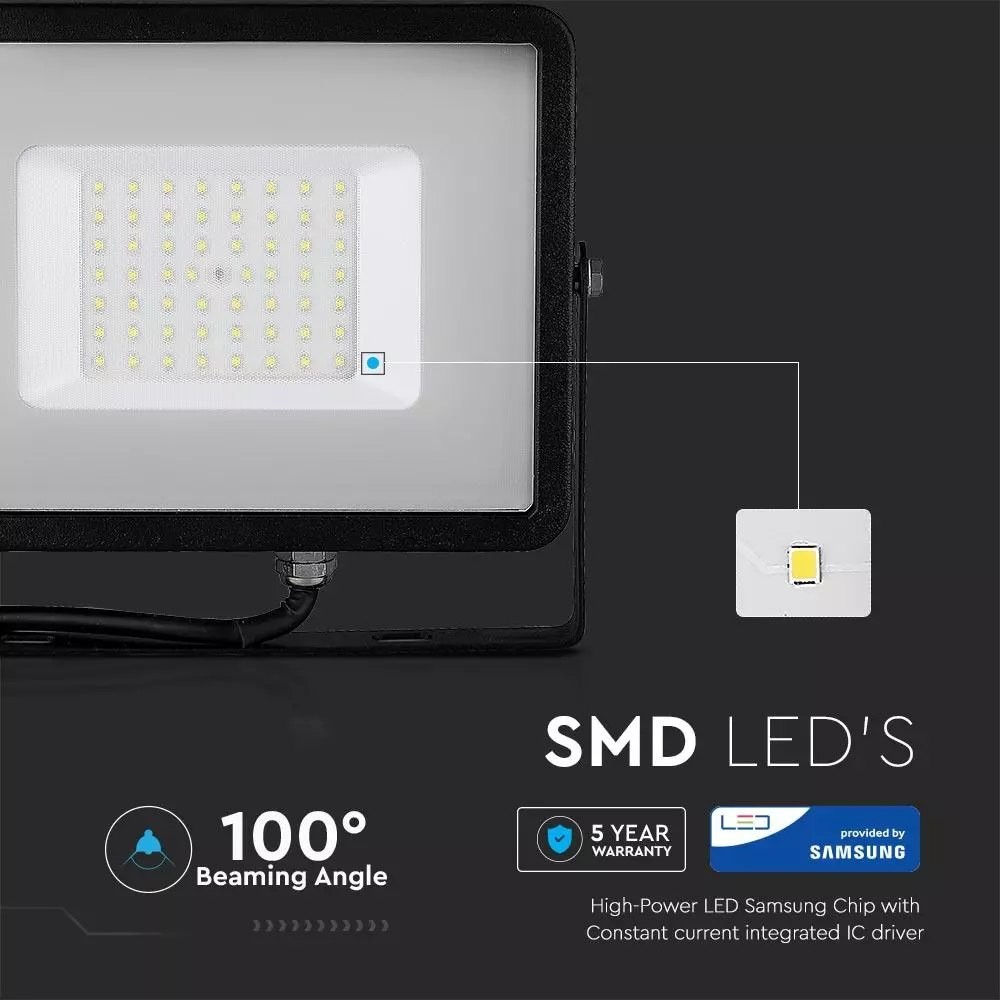 SKU 408 VT-50-B V-TAC PRO Faro LED SMD Chip Samsung 50W Colore Nero 6400K IP65