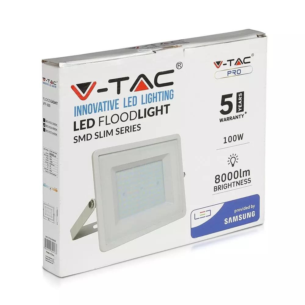 SKU 415 VT-100-W V-TAC PRO Faro LED SMD Chip Samsung 100W Colore Bianco 3000K IP65