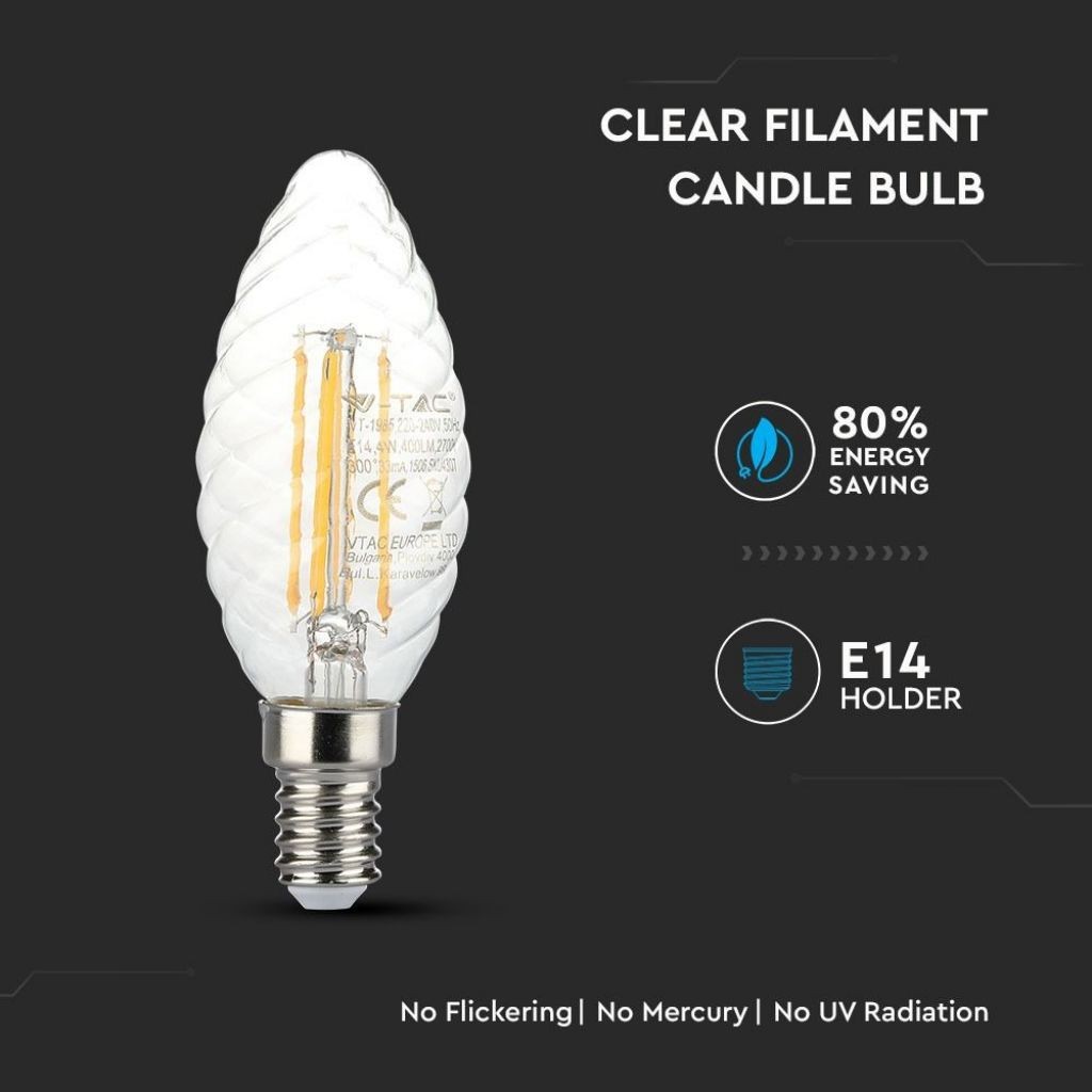SKU 4307 VT-1985 V-TAC Lampadina LED E14 4W Candela Tortiglione Filmento 2700K