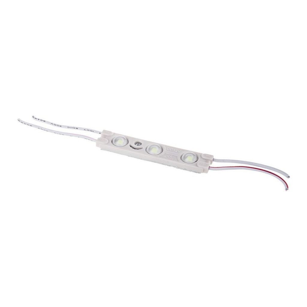 V-Tac VT-28353 modulo monocolore composto da 3 LED SMD 2835 con potenza totale di 1W e flusso luminoso complessivo di 100 lm. Ad alta luminosità e realizzato in ABS e alluminio, ha un fascio luminoso di 120° ed un rapporto di 100 lm/W. Grazie al suo grado di protezione IP67 è idoneo sia ad un uso domestico che industriale, ed è impiegabile anche nell’illuminazione architettonica di interni ed esterni. Date le ridotte dimensioni, è inoltre possibile utilizzarlo per insegne pubblicitarie o di segnalazione di qualsiasi misura e spessore. Il fascio luminoso diffuso consente una distribuzione omogenea della luce, mentre il biadesivo applicato sul retro rende il modulo di facile installazione. Il collegamento tramite cavi a saldare permette di alimentare tutti i moduli da un’unica fonte. Per il funzionamento è necessario un alimentatore 12V a corrente diretta proporzionato all’assorbimento totale di potenza di tutti i moduli collegati.
