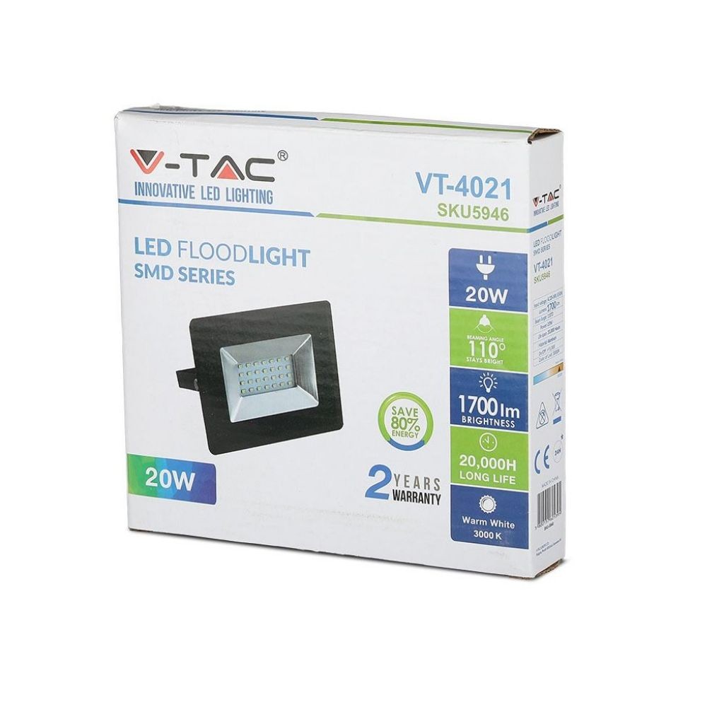 SKU 5947 VT-4021 V-TAC Faro LED SMD 20W E-Series Colore Nero 4000K IP65