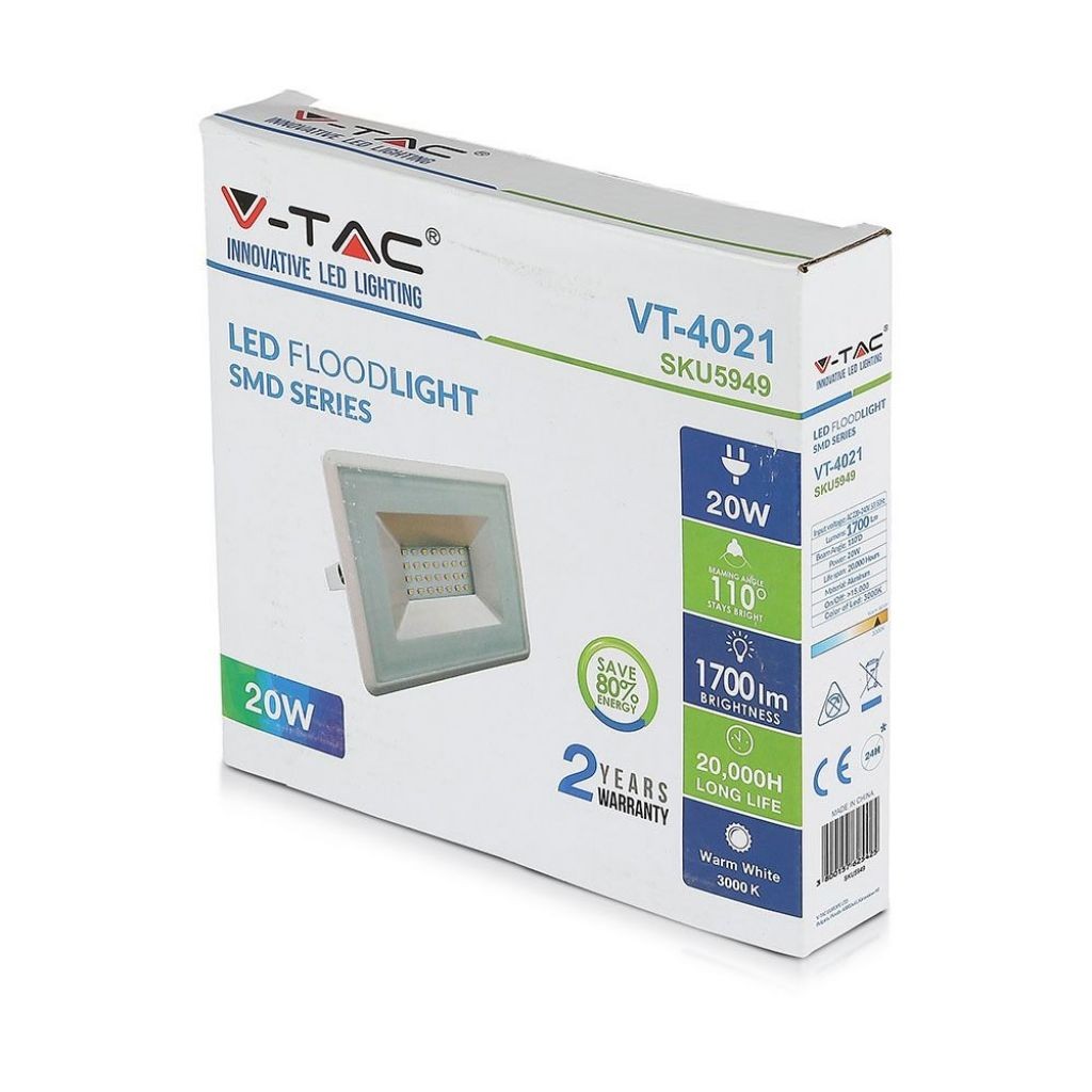 SKU 5951 VT-4021 V-TAC Faro LED SMD 20W E-Series Colore Bianco 6400K IP65