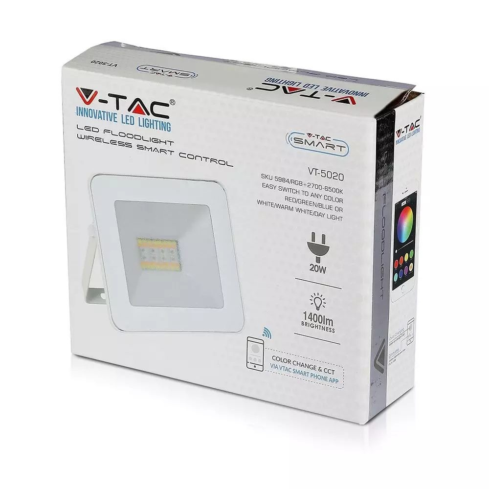 SKU 5984 VT-5020 V-TAC Faro LED SMD 20W RGB Bluetooth 3 in 1 Controllabile da App Colore Bianco Dimmerabile