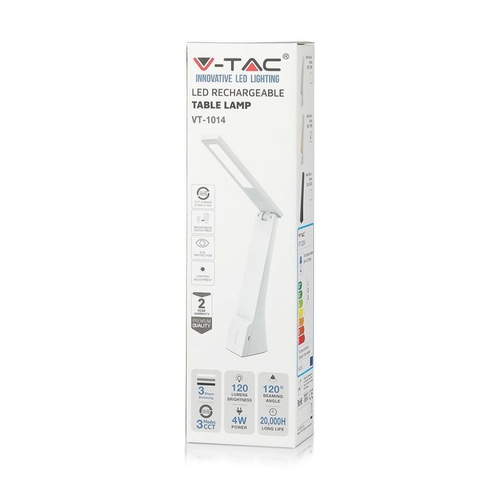 SKU 7099 VT-1014 V-TAC Lampada LED da Tavolo 4W 3 in 1 Ricaricabile a Batteria Colore Bianco e Oro Touch Dimmerabile