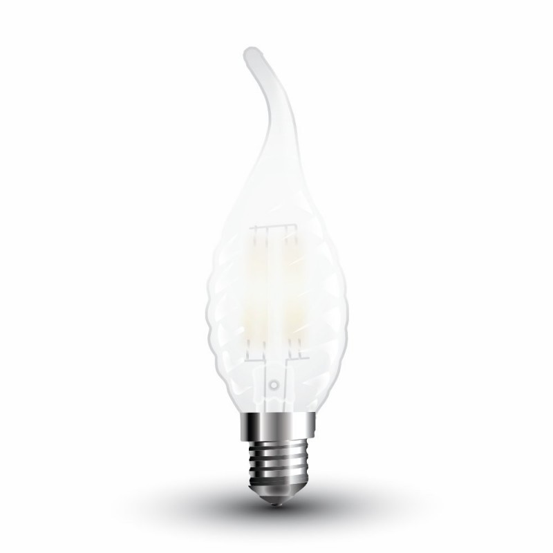 SKU 7112 LUCE 6400K VT-1923 V-TAC Lampadina LED E14 4W 100LM/W Candela a Fiamma Tortiglione Filamento Satinato