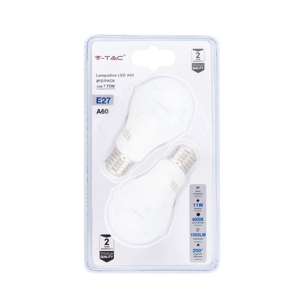 SKU 7299 VT-2111-B V-TAC Lampadina LED E27 11W 100LM/W A60 6400K (Blister 2 pezzi)