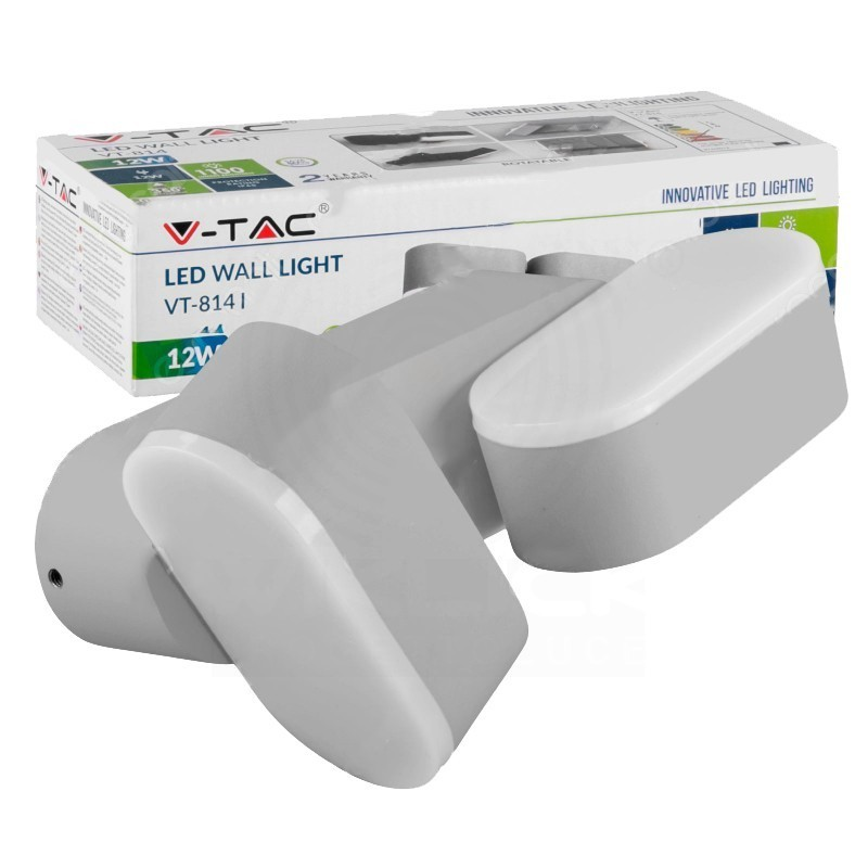 SKU 8294 VT-814 V-TAC Lampada LED da Muro Ovale 12W 110LM/W Colore Grigio con Doppia Testa Ruotabile 3000K IP65