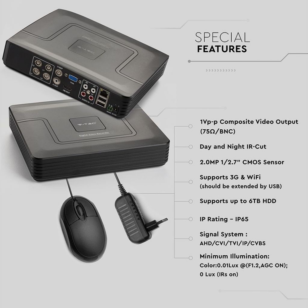 SKU 8476 VT-5127 V-TAC Registratore DVR Ibrido 5 in 1 a 4 Canali 1080n HD con Sensore di Movimento Compatibile con Smart Device