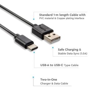 SKU 8494 VT-5341 V-TAC Cavo da Micro-USB a USB-A 1m Ricarica Rapida 2.4A Ruby Series Cavo Antigroviglio in Corda Colore Nero
