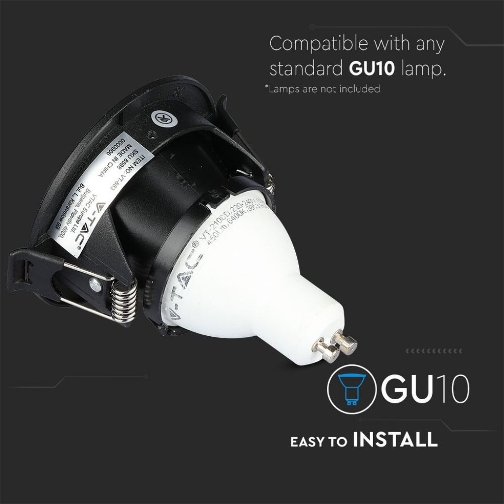 SKU 8598 VT-883-B V-TAC Portafaretto LED da Incasso GU10 con Sezione Quadrata Colore Nero con Interno Nero