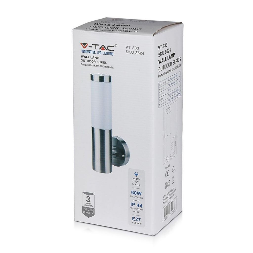 SKU 8624 VT-833V-TAC Lampada LED da Giardino con Portalampada E27 (max 60W) in Acciaio Inossidabile Fissaggio Verticale IP44