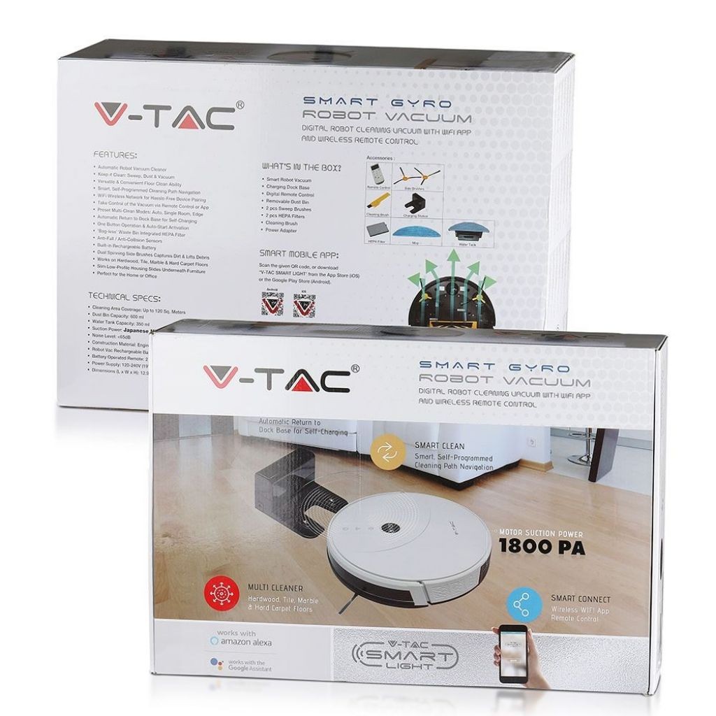 V-TAC Aspirapolvere Giroscopico Robotizzato Compatibile con Amazon Alexa e Google Home Colore Bianco