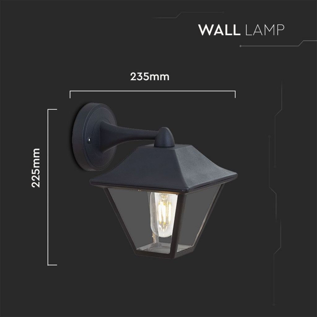 SKU 8686 VT-843 V-TAC Lampada LED da Muro a Lanterna in Vetro con Portalampada E27 Colore Nero Opaco IP44