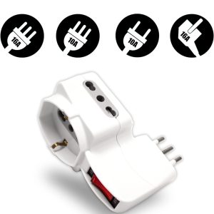 V-Tac Multipresa Adattatore Triplo con spina da 16A. Questo adattatore triplo in materiale plastico di colore bianco o nero, ha spina di tipo Italiano 2P+T 16A e 3 prese bivalenti 10/16A 2P+T.