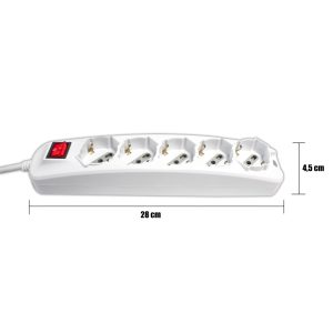 Multipresa V-Tac salvaspazio da 9 posti con interruttore luminoso. Realizzata in materiale plastico di colore bianco con spina di tipo italiano 2P+T 16A, ha la particolarità di avere oltre alle 3 prese di tipo Schuko + 10/16A 2P+T, 6 prese bivalenti disposte nei due lati. In questo modo il risparmio di spazio rispetto ad una multipresa tradizionale da 9 posti è notevole. Grazie all’interruttore ON/OFF illuminato e posto nella parte superiore, è possibile evitare inutili sprechi di energia togliendo corrente a tutte le spine connesse alla multipresa.