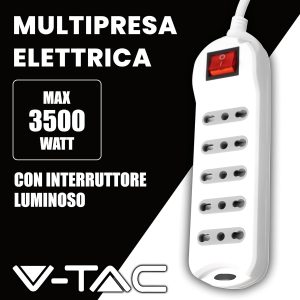 SKU 8756 VT-1104 V-TAC Multipresa con Cavo 1,5m 4 Prese 10A 2P + Schuko e Spina Schuko Colore Bianco