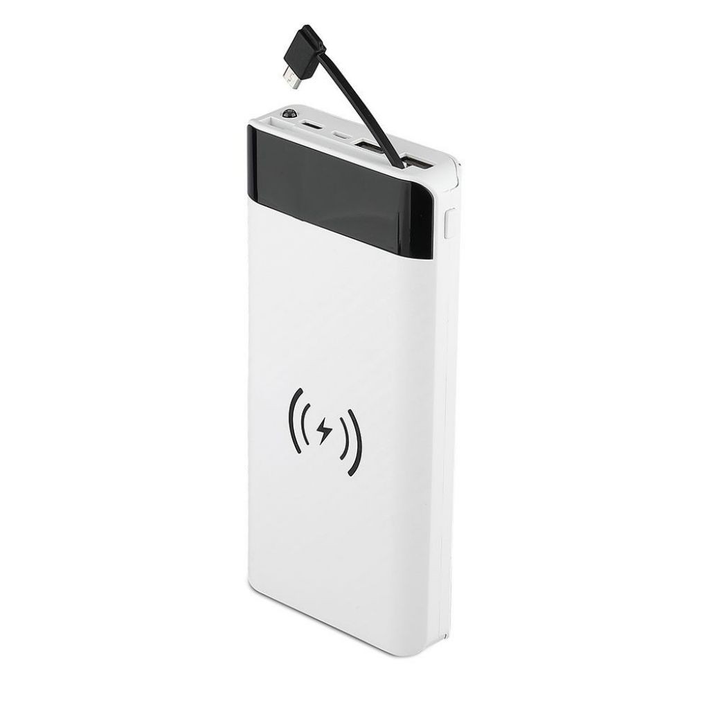 20K Mah Power Bank With Wireless Charger & Built In Micro USB Cable White