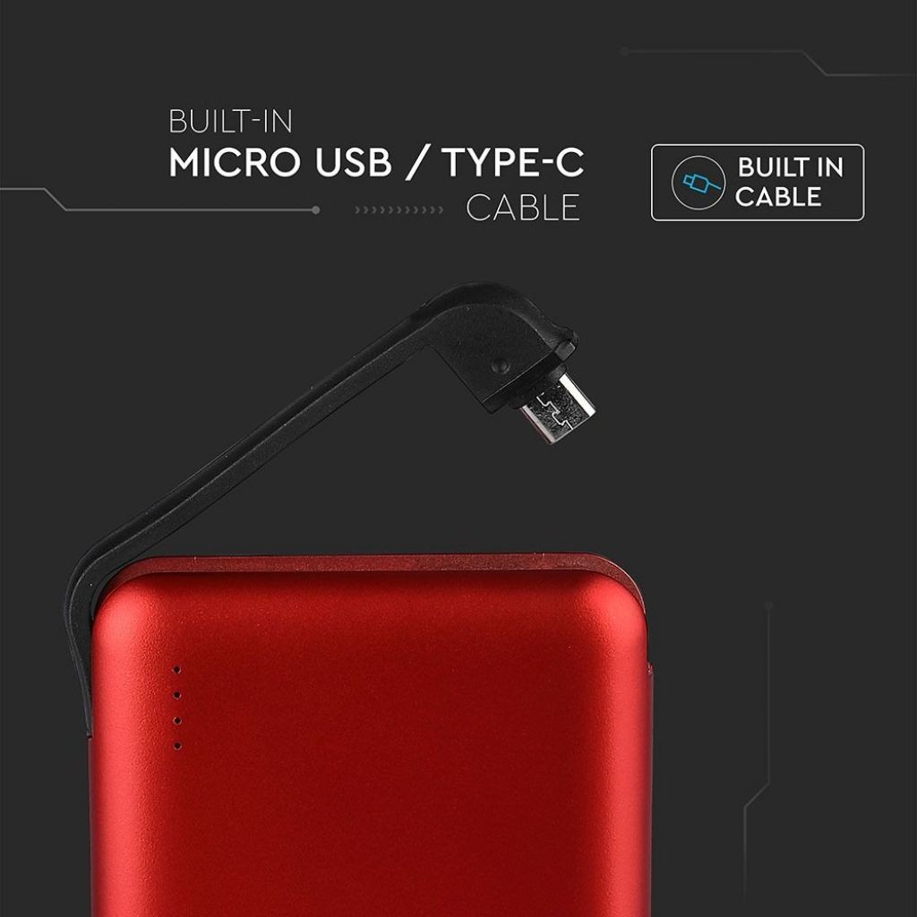 SKU 8866 VT-3510 V-TAC Power Bank 5.000 mAh con Display e cavo USB Colore Rosso