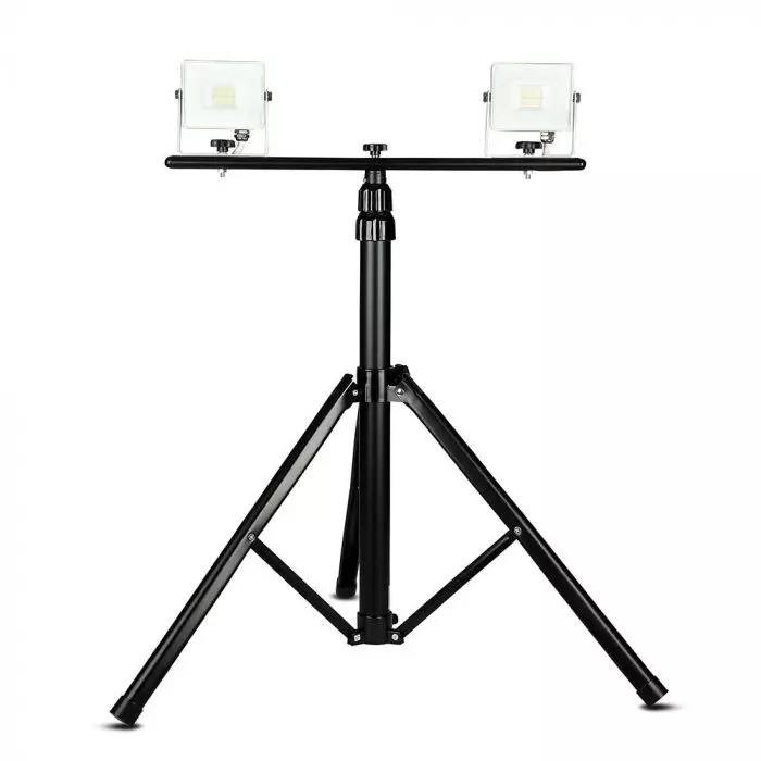 - Supporto Treppiede per fari V-Tac VT-41150 in alluminio di colore nero. Adatto a qualsiasi uso, è molto indicato nell’uso cantieristico. Il supporto, realizzato in alluminio, ha un peso di 4,47 Kg e può essere usato per agganciare fino a 2 fari da 10W a 50W. L’altezza è regolabile fino ad un massimo di 1,5 metri.