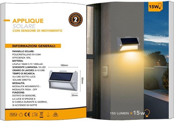 SKU YH0408-PIR-C applique solare LUCE CALDA 3000K