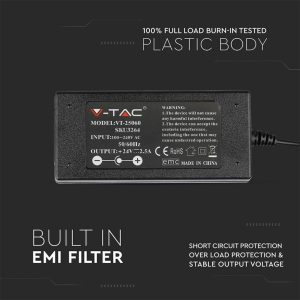 Perfettamente compatibile con tutte le strisce LED V-TAC e altri dispositivi a 12V, fornisce una tensione di uscita stabile per proteggere i componenti collegati. Tramite l’uscita con cavi a saldare, può essere connesso facilmente alle strisce LED o utilizzato per alimentare altri apparecchi elettronici come router, hub, telecamere di sicurezza, impianti audio-video, ecc.