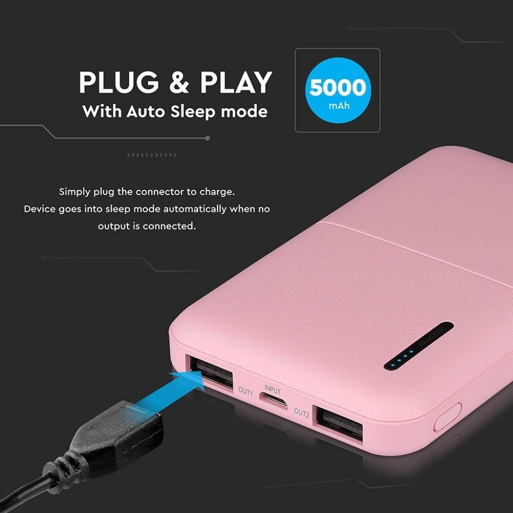 V-TAC VT-3517 Power Bank 5.000 mAh Super Compatto Colore Rosa – SKU 8895