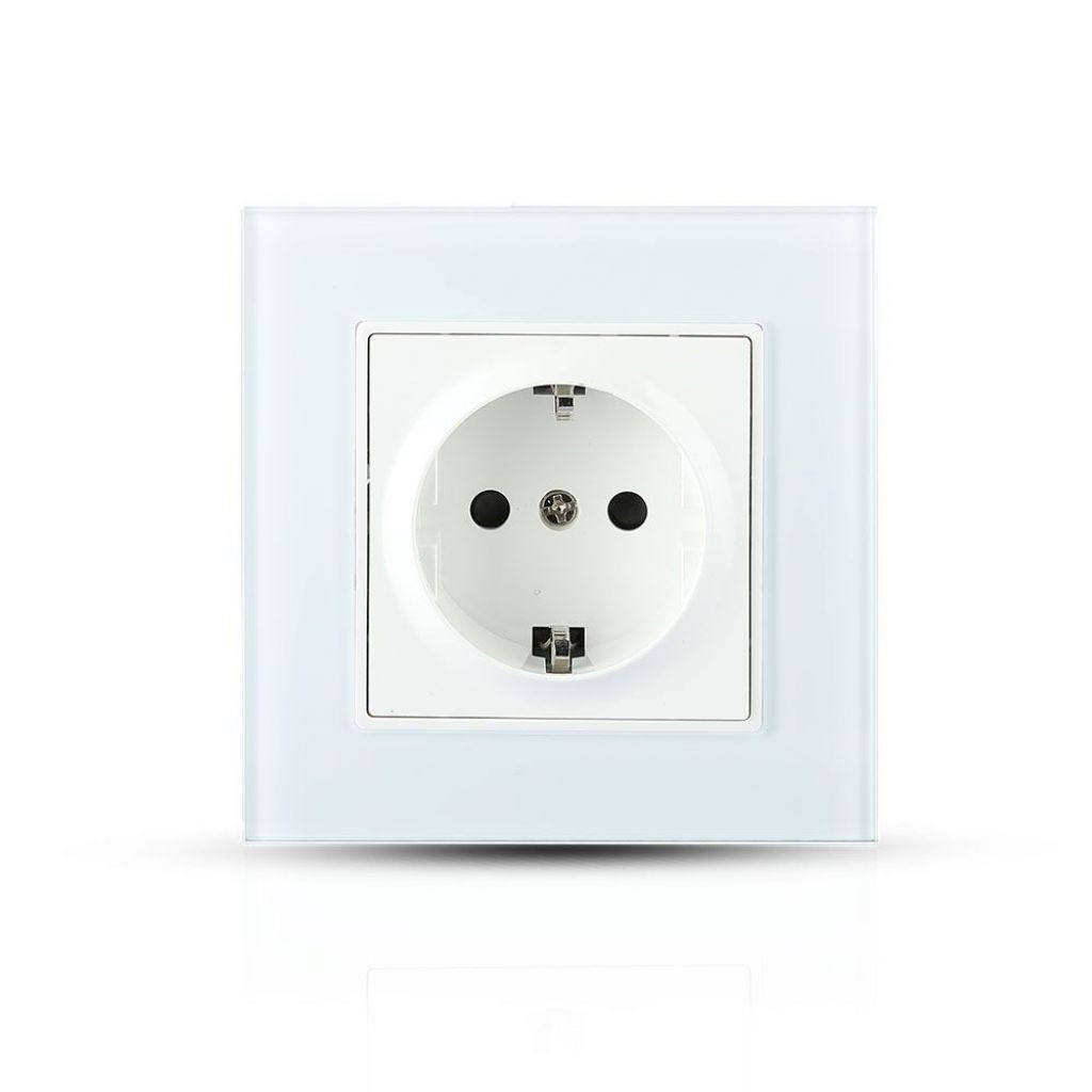 V-TAC VT-5711 Presa ad Incasso Singola per Shuko e 10A 2P+T con Rivestimento in Vetro Colore Bianco – SKU 8379