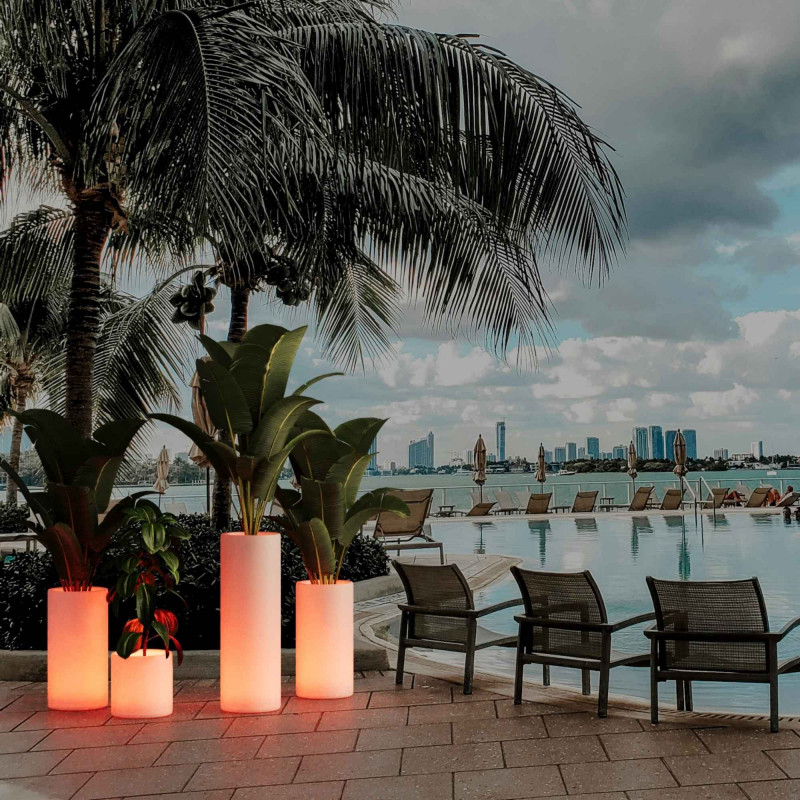 Fioriera a LED per esterni, wireless e ricaricabile. Perfetta per creare l’atmosfera ideale per bar, terrazze ed eventi con un’illuminazione moderna ed elegante.